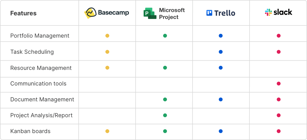 To understand how project management is currently being addressed, I looked at our direct and indirect competitors. None of them address the all our problem statements. I tried to analyse competitive tools closely and tried to figure out what they were lacking and what unique features can be introduced in our solution.